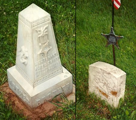 Albe Sweet (pictured above), the younger brother of Sylvester E. Sweet, was born 1840 in Ontario, Canada and also served with the 6th Battalion, Light Artillery for Wisconsin. Albe died 27 May 1868 in Bear Creek, Sauk Co., WI while helping his brother Nicholas build a hop house when it fell on.. He was the first person buried in Marble Ridge Cemetery and then later moved to the Spring Green Cemetery and his parents were buried next to him.