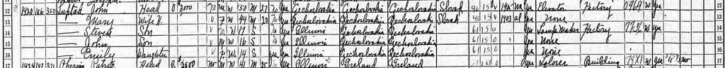 Stephen & John & Mary & Amelia (my grandma) & baby Frank who dead Dec 1908 Born