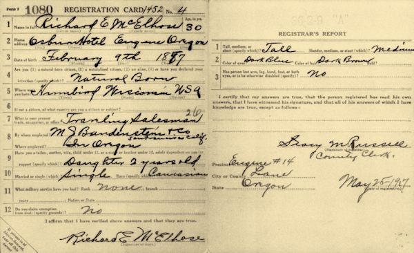 Draft Registration 1917-1918 Lane County, Oregon, United States