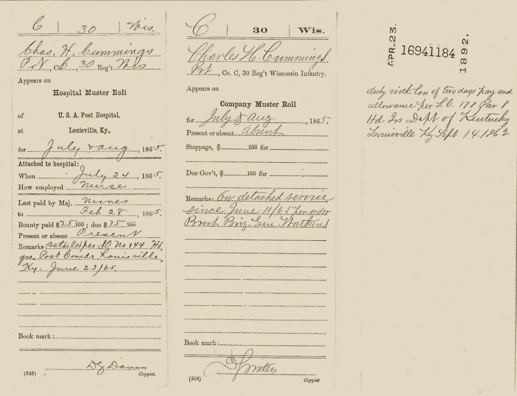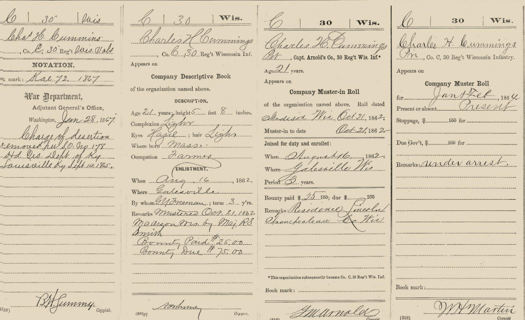Charles Cummings is also featured in the book, "Civil War Soldiers in the heart of Clark Co., Wisconsin."