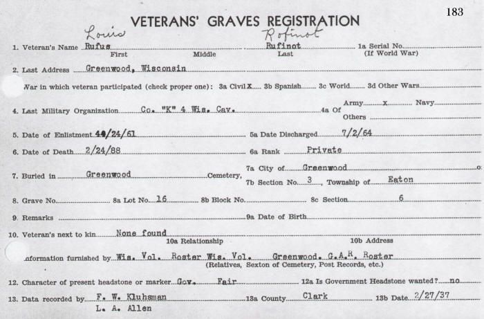 Bio: Rufinot/Rufus/Rofinot, Louis, Civil War Soldier