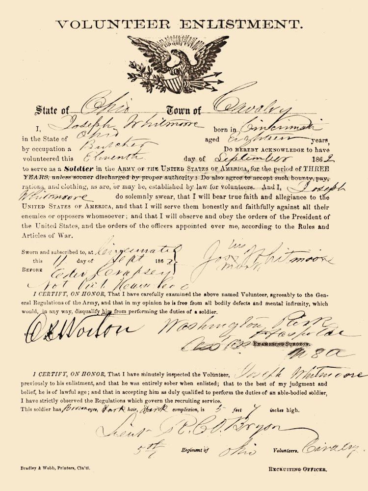 on his own. He found work in the butchering trade. September 16, 1862, he joined the Union Army at