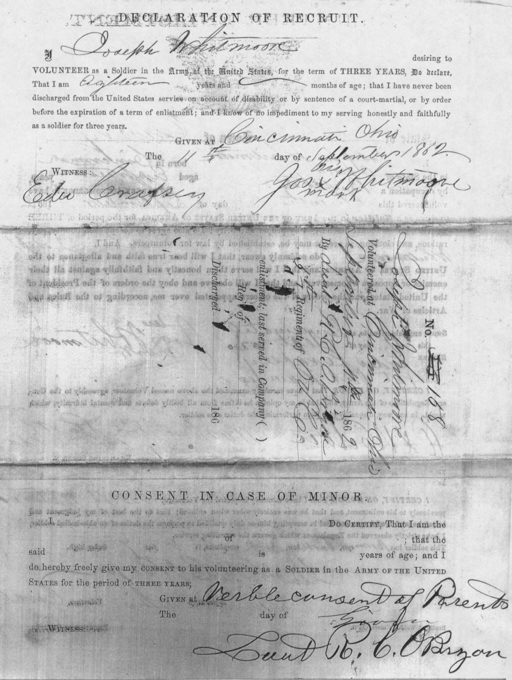 JOSEPH WHITMORE, 1840-1907 Civil War Soldier, lived in Spencer [No land
