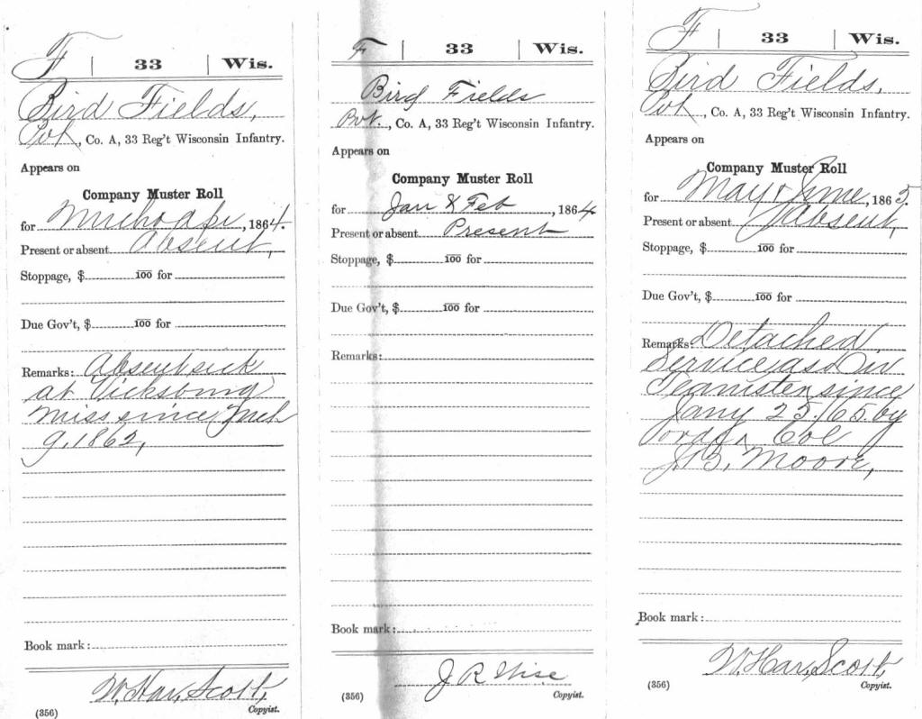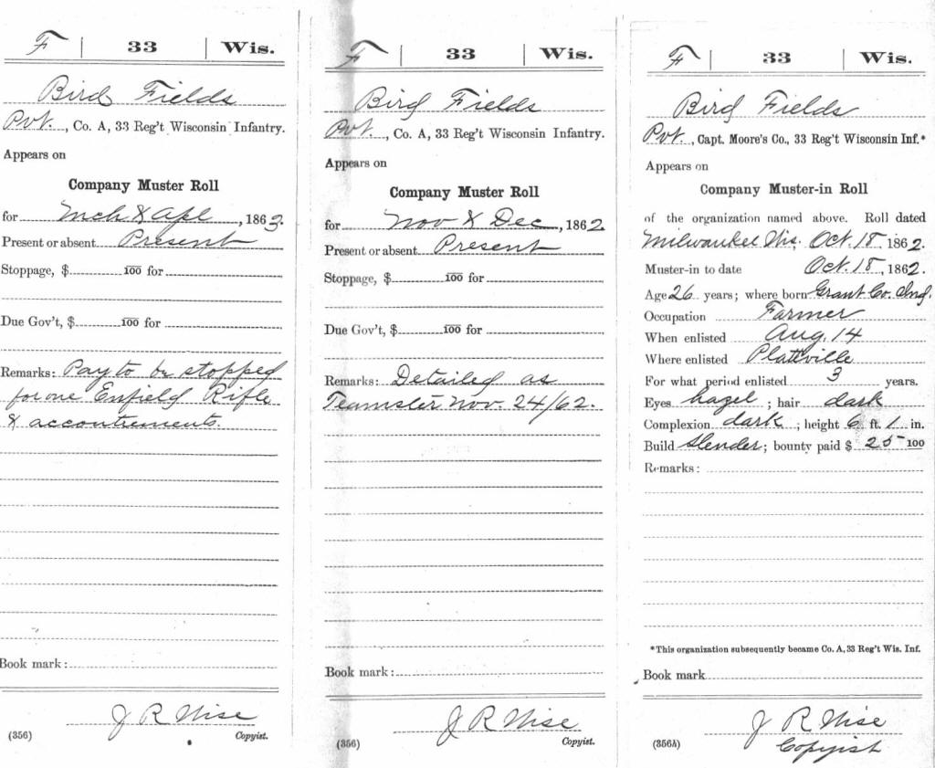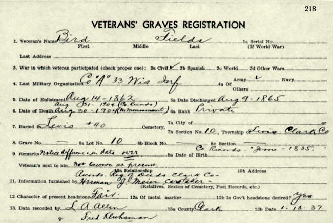 33rd WI along side his younger brother, Alfred. Bird died Aug. 30 or 31st, 1904 and is buried in the