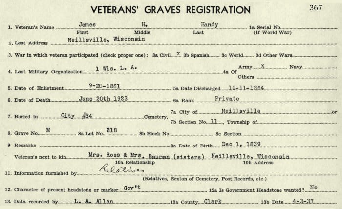 James H Handy by adoption, but enlisted as James H. Gillard.