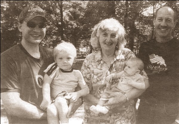 Gathered together recently are four generations of the Anason family. Ryan Anason (left), of Westfield, holds son Noah, age 2. Great-grandmother Carol Anason (center), Neillsville, holds her great-grandson, Isaiah, age 3 months. Grandfather, Larry Anason, Neillsville, is at the right. (Contributed photo) |