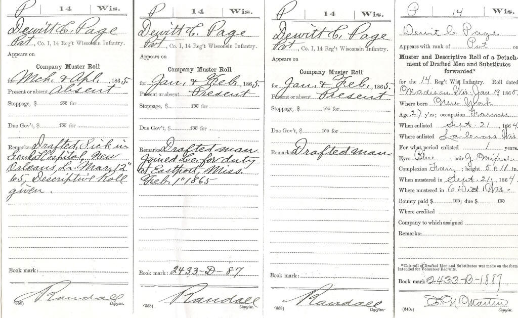 Army in La Crosse, Wisconsin, September 21, 1864. He was drafted for duty