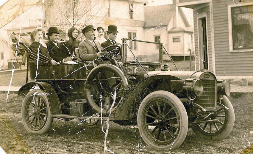 John & Clara Schwieo on their wedding day riding in what was called the "first car in Loyal" ??? This might just be a family lore but the date is May 13, 1909.