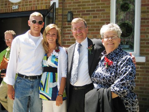Picture 1: Left to Right: Robert and Kristin (Hodnett) Dow; Allan and Bridget Hodnett. Kristin is daughter to Allan and Bridget and married to Robert. They live in Sicily, Italy, where Robert is stationed with the US Navy. Robert and Kristin came to Wisconsin for the wedding and vacation. Robert is assigned to the US Naval Air Station in Sigonella, Italy.