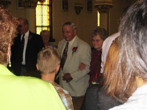 Picture #4: Taken in the church at the wedding on June 28, 2008. Walking into the church before the wedding. Vincent "Pete" Lindner and Eileen Kuehn Hodnett.