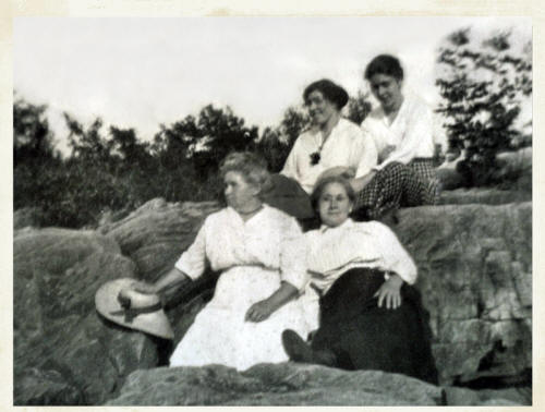 Back Row: Hazel (Maud?) Warner Flatz, Edna Burch Hauser Front Row: Mary Warner, Belle Burch. |