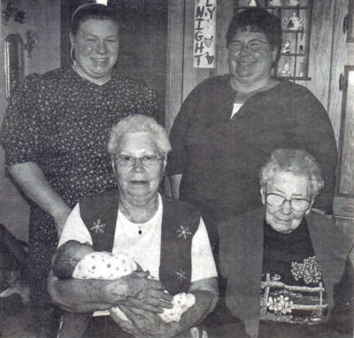 Five generations of a Neillsville family gathered recently for this photo. Seated (left) is great-grandmother, Vivian Bohnsack holding baby Abigail Dawn Shirk. Also seated is great-great-grandmother Clara Hemp. Standing (left to right) is mother, Candi Shirk and Grandmother, Joan Buchholz. (Contributed photo)