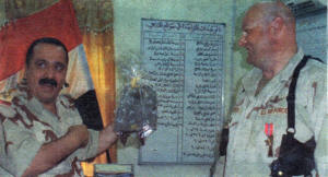 Lt. Col. Mark A. Meyer ® United States Air Force, a native of Neillsville, has been transferred to Germany from Iraq. He was awarded the Bronze Star August 28, (2008) for meritorious achievement as senior advisor for one year during Operation Iraqi Freedom. The above photo was taken during his going away party with the Iraqi Army base commander, Staff Brigadier General Sabah.
