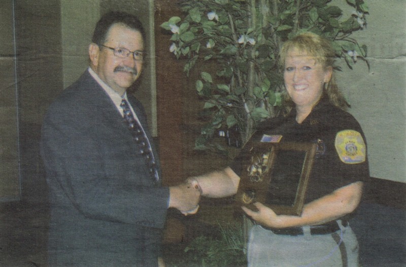 Clark County Sheriff Louis Rosandich (L) shakes hand with Deputy Dawn Jacobson after she received a Meritorious Ward for rescuing an accident victim. The Award was presented by the Wisconsin Professional Police Association (WPPA) May 31 in Wisconsin Dells. (Contributed Photo)