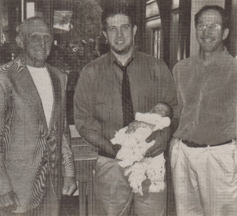 Four generations of the Harder family pose for this picture. Pictured (l-r) are: great-grandfather Rene Harder, father Lucas Harder holding son Dayton, and grandfather Grant Harder. (Contributed photo)