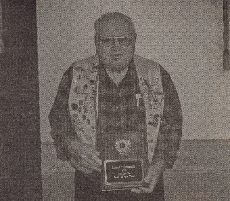 Lamar Schmitz displays his 2010 Neillsville Lion of the year award Monday, Dec. 20. Schmitz, who has been with the Neillsville Lions Club for over 40 years, received the award Saturday, Dec. 18, at the Neillsville Country Club. (Peter Spicer/Clark County Press Photo)