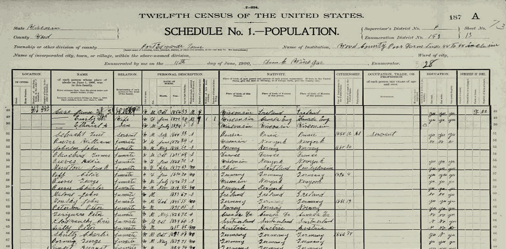 Poor Farm Residents, 11 Jun 1900, Nekoosa Village, Port Edwards, Wood Co., Wisconsin
