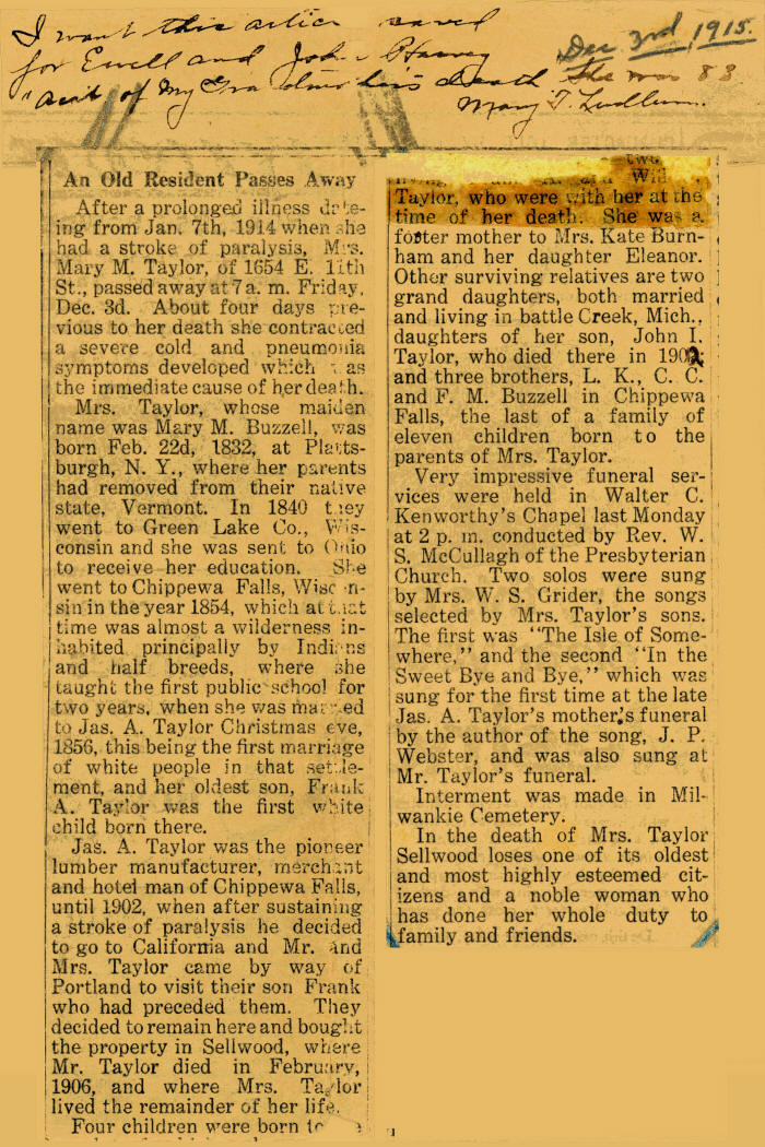 Mrs. Taylor, whose maiden name was Mary M. Buzzell, was born