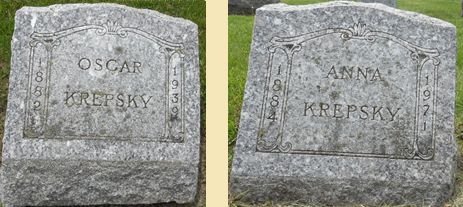 Oscar Henry Krepsky (1882 - 1939) is buried the Wildwood Cemetery, next to his wife, Anna Nitsch Krepsky (1884 - 1971)