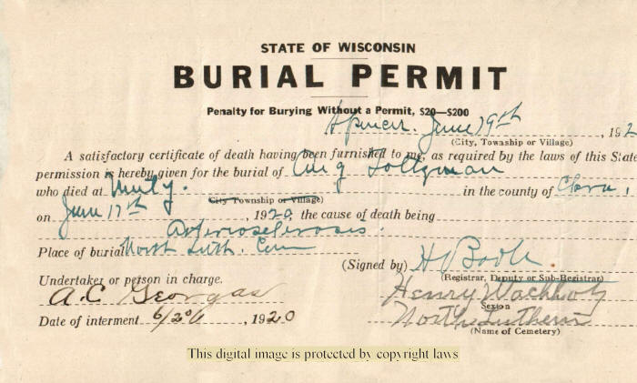 ----Sources: St. John's Lutheran Church Records & Burial Permit provided by Janet Schwarze, Tombstone photo by Kathleen Englebretson, Wikipedia,
