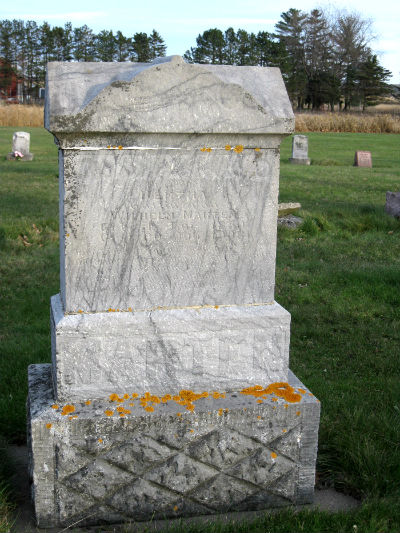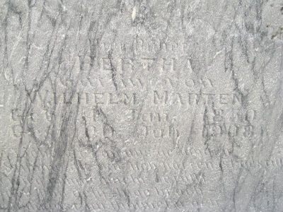 The Unity, Wisconsin farmer, William Marten was born in Gross-Justin, Pommern, Germany; the son of Carl Marten. In 1870 he and Bertha Gentz (b. 4 Jan 1850) were married. She was the daughter of Carl Gentz and she died 20 Jul 1908, at the age of fifty-eight of blood poisoning. William died the year he would have turned eighty, 19 Feb 1921, from a pulmonary disorder likely caused from*chronic Nephritis. Both are buried in St. John's Lutheran Cemetery, North Spencer, Wis.
