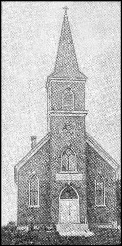At a congregational meeting held Feb. 16, 1879, it was decided to buy a building site for a house of worship. No further action was taken, however, until on Christmas day, 1880, when it was definitely decided to begin building preparations. Logs were cut during the winter and taken to a mill at Romeo, where they were sawed into lumber. The following summer, the first church was built by a Mr. Parker for the sum of $200. This structure is still in existence, being now used as the town hall.