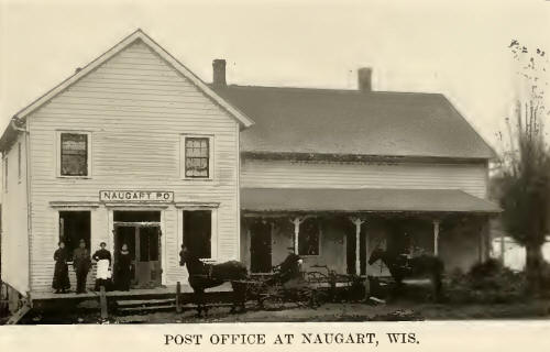 There are seven school districts, each with a good frame schoolhouse, with a course of study up to the eighth grade, open eight months a year. There are three Lutheran churches in the town, one at Naugart in the center, one at or near the northwest corner and one on the south side of the town. These three congregations were originally one, founded about fifty-two years ago, but in later years they separated at least in two.