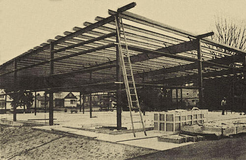by Friday the skeleton for the community's new grocery store was up. Plans call