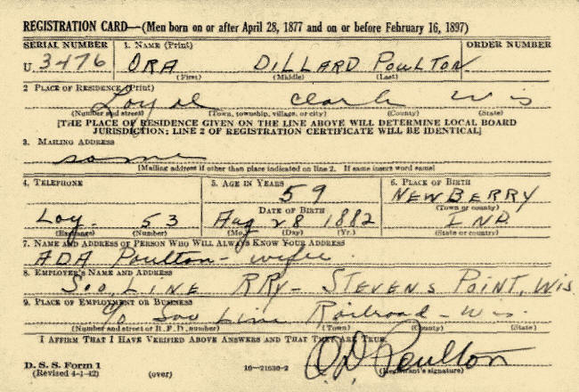 WWII Draft Registration, 1942, Loyal, Clark, Wisconsin, United States
