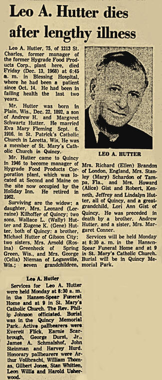Leo A. Hutter, 75, of Quincy, Ill. former manager of Hygrade Food Products