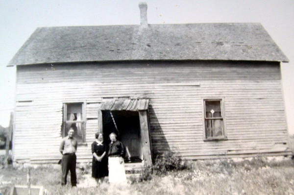 Elizabeth is shown in front of her mother's house ("me") with her brother, Paul KLAWINSKI , and her mother, Rose STENCIL KLAWINSKI. Date unknown. |