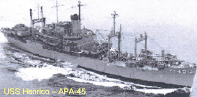 Virginia to board the USS Henrico, APA-45, an Army Personnel Assault ship.