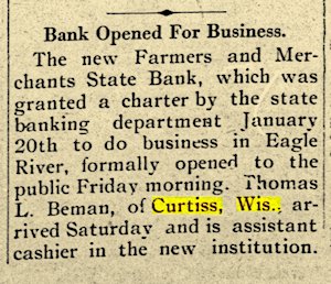 In early 1916 he came to Curtiss (Clark Co., Wis.) and worked at the Curtiss