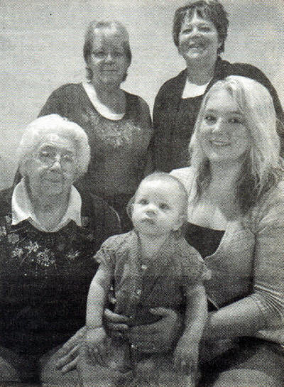front row (l - r): Great-great-grandmother Bea Witek and mother Rakell Boie