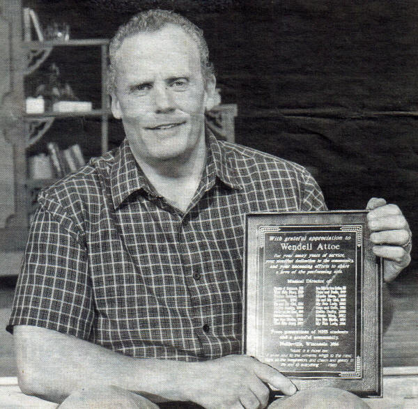 Musical director Wendell Attoe was honored with a plaque from generations of NHS