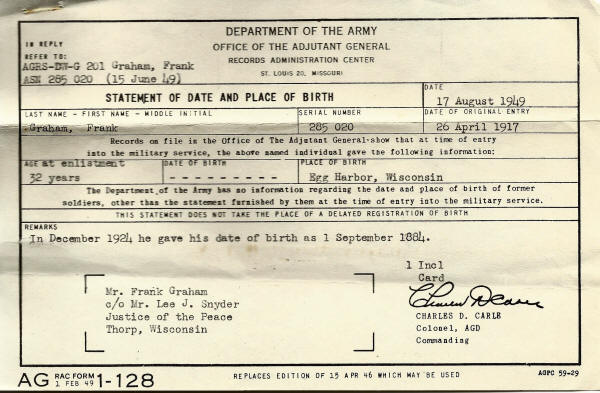 some of Frank Graham’s Army related documents. Does anyone reading this