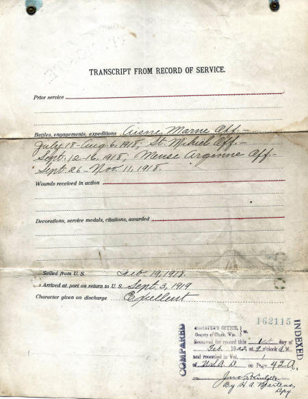 07/15/1917 thru 09/25/1919. He was born in Egg Harbor, WI, the son of David