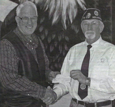 check to Wendell Kuhn, commander of Neillsville American Legion Post 73, at the