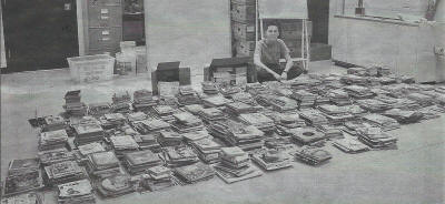 Brady Coulthard sorts out some of the approximately 2,400 books collected