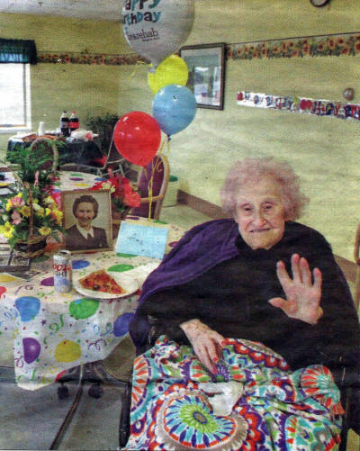 Amy Morgal gave a wave to guests attending her 101st birthday party March 5 at