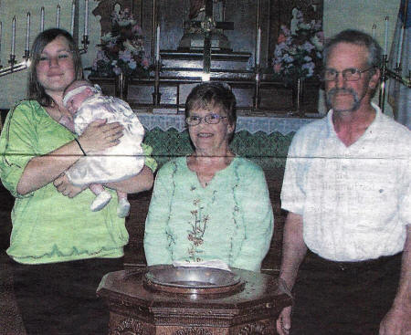(great-great-grandma, Shawn Tlusty (dad) holding Layden Tlusty and Mark Tlusty