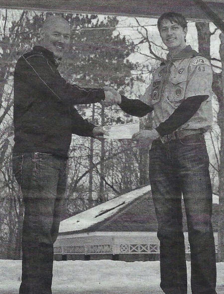 Joe Anason (right) receives his final Eagle Scout service project donation from