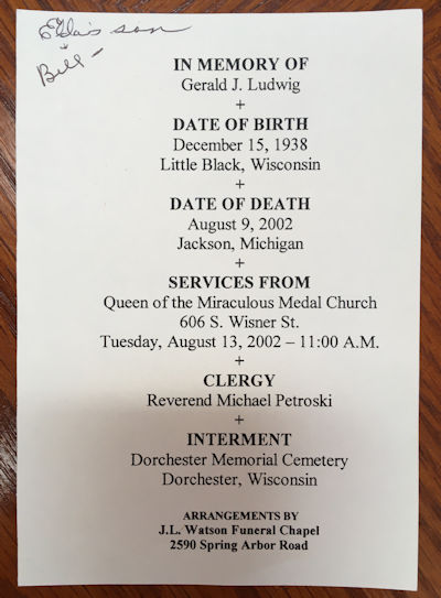 Gerald “Jerry” Ludwig, 63, of Parma, Mich., died Aug. 9, 2002, at W.A. Foote