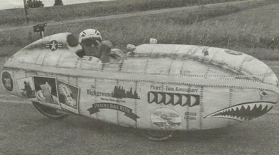 Kingsbury’s bike, a Quest velomobile, is unique in that it’s recumbent,