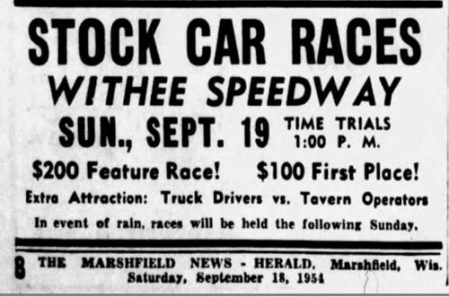History: Hixon Twp. - Withee - Withee Speedway (1954)
