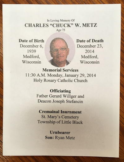 Obit: Metz, Charles “Chuck” (1939 – 2014)