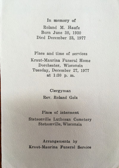 Haufe, Roland M. (30 JUN 1930 - 23 DEC 1977)