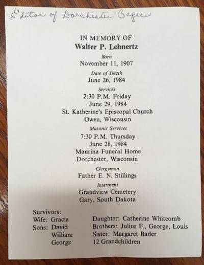 Obit: Lehnertz, Walter P. (1907 - 1984)