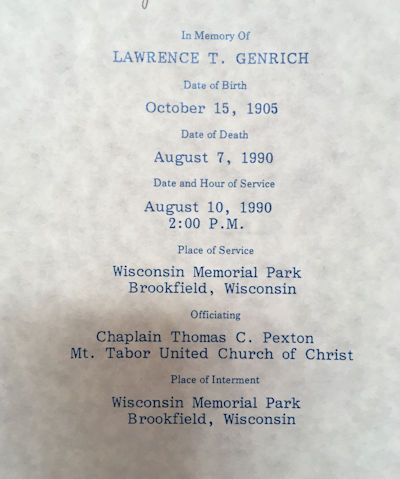 Genrich, Lawrence T. (15 OCT 1905 - 7 AUG 1990)