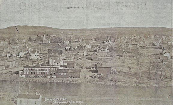 Neillsville High School in 1915; a birds-eye view of Neillsville in 1912 and